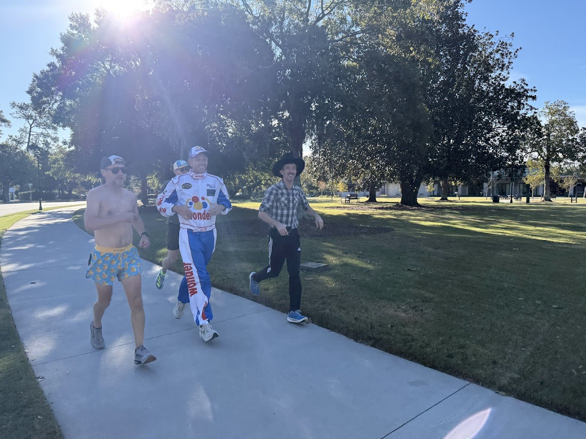 In 2020, during the early part of COVID and the associated lockdowns, I was doing almost all of my running on a one-mile loop around a park near downtown Charleston. People were stressed out, and I got the idea that it would be funny to run there in a banana costume to try to lighten the mood, and to use that attention to raise money for our food bank. The farthest I’d run in one go up to that point was about 28 miles, and to give the fundraiser a little bit of a spectacle I decided to attempt 50 one-mile loops. I set a fundraising page up online, got the word out, and in early September completed all 50 laps, raising a little over $3,000.